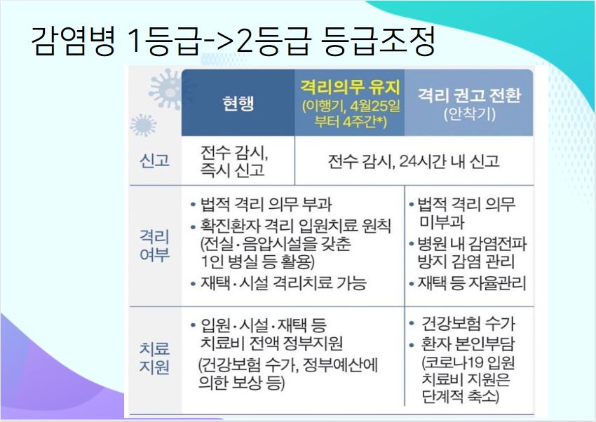 코로나 감염병 등급 조정에 따른 비교