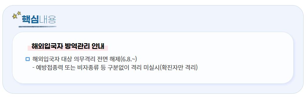 결론부터 말씀드리면, 6월8일 이후로 해외에서 입국시 자가격리는 면제.